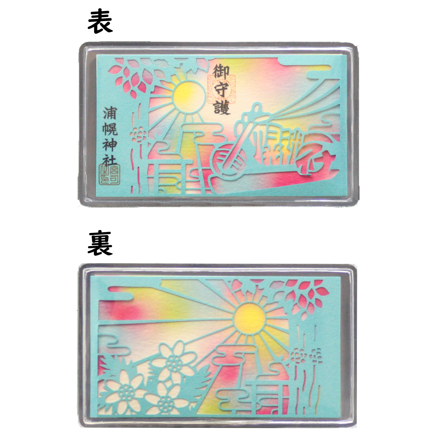 表も裏も切り絵で奉製し、ツーリング中、雨に濡れないようビニールでコーティングしております。